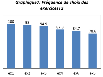 Nous pouvons penser que les élèves choisissent les exercices qui sont plus abordables pour eux et évitent de choisir les exercices les plus difficiles. Le classement des exercices selon les choix des élèves des plus faciles aux plus difficiles s'établit comme le présente le graphique 5.