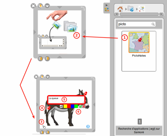 Ajouter une image par glisser/déposer[6] depuis la bibliothèque d'images dans l'objet PictoNotes.
