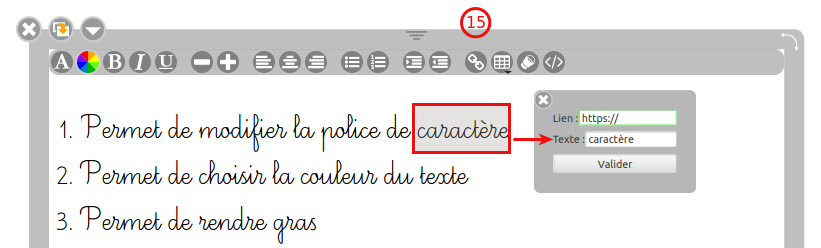 Cliquer sur l'icône pour ajouter un lien hypertexte sur du texte (15)